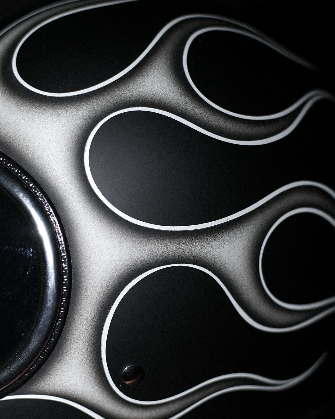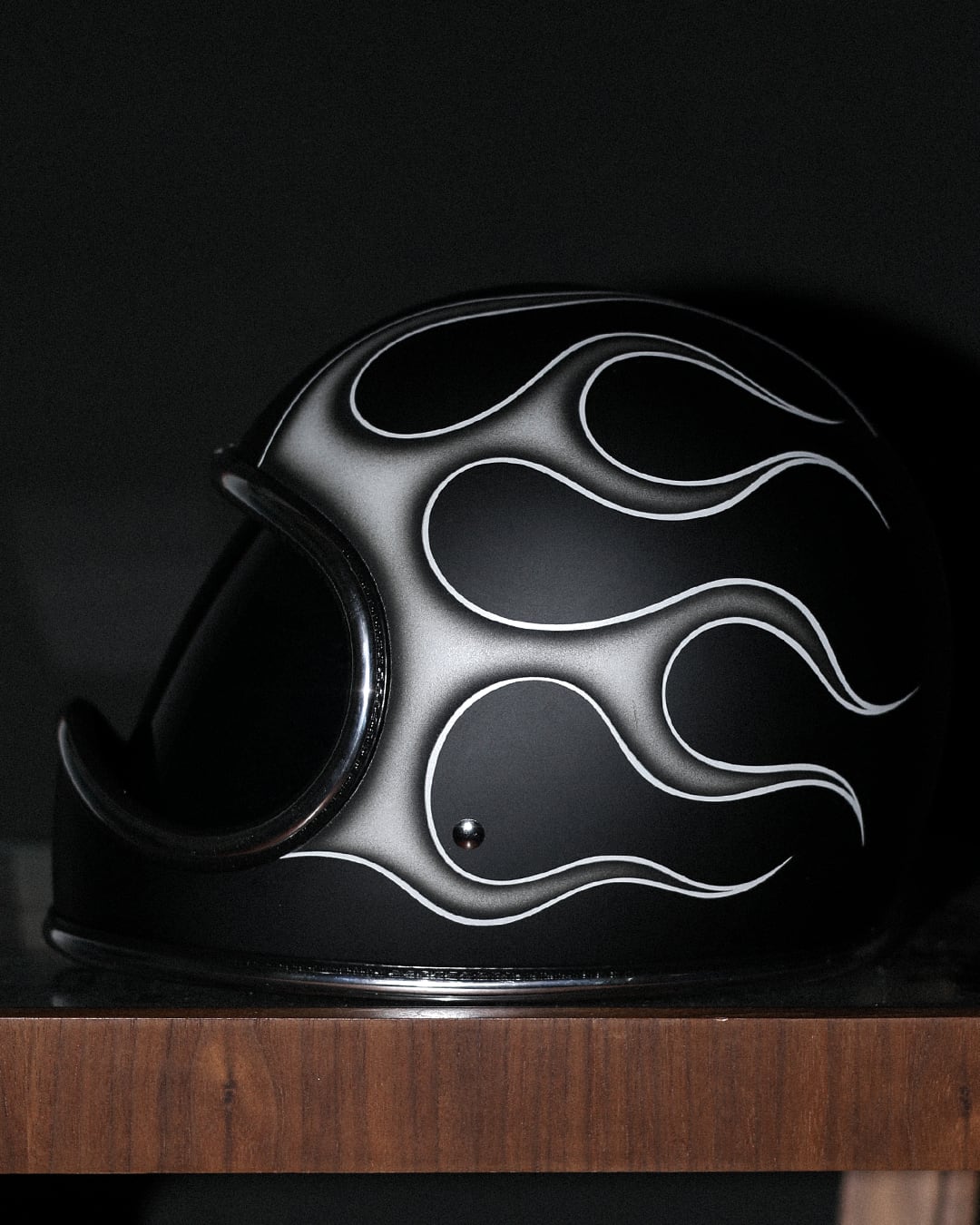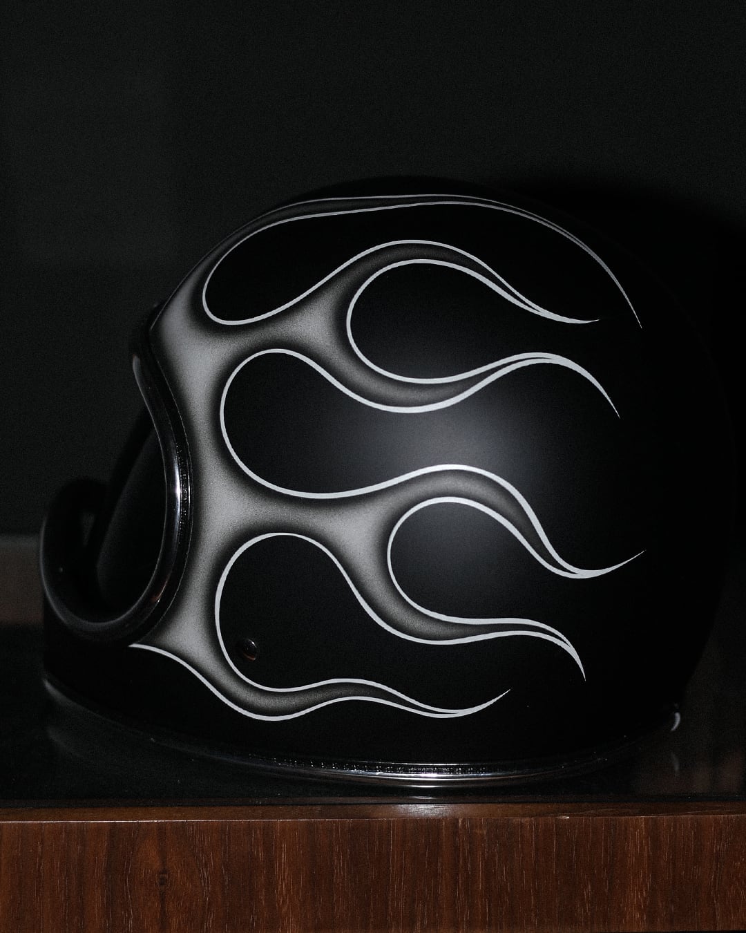 マッドブラックカラーUNIVERSE HELMETにグラデーション調のフレイムスを落とし込みました。
