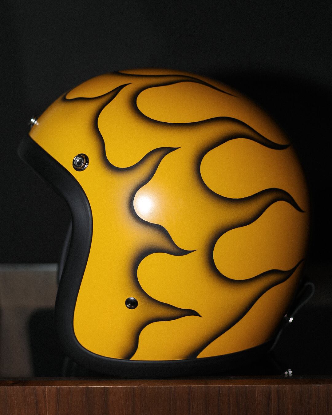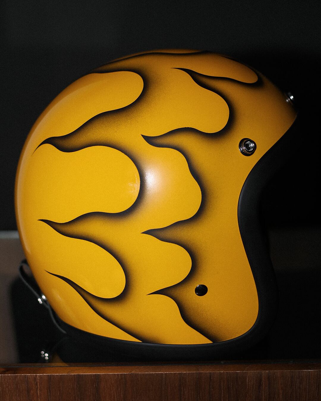 新品のVINTAGE SMALL HELMET(YELLOW/FREE)に、細かくデザインからペイントまで完全ハンドメイドで製作した一点物になります。
