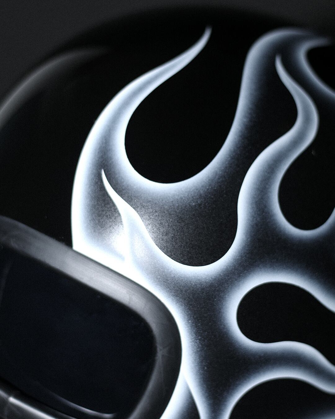 背面まで侵食していく様にフレイムスを描き、フレイムスそれぞれに陰影をつけることで、様々な角度から楽しめる一点物となっています。