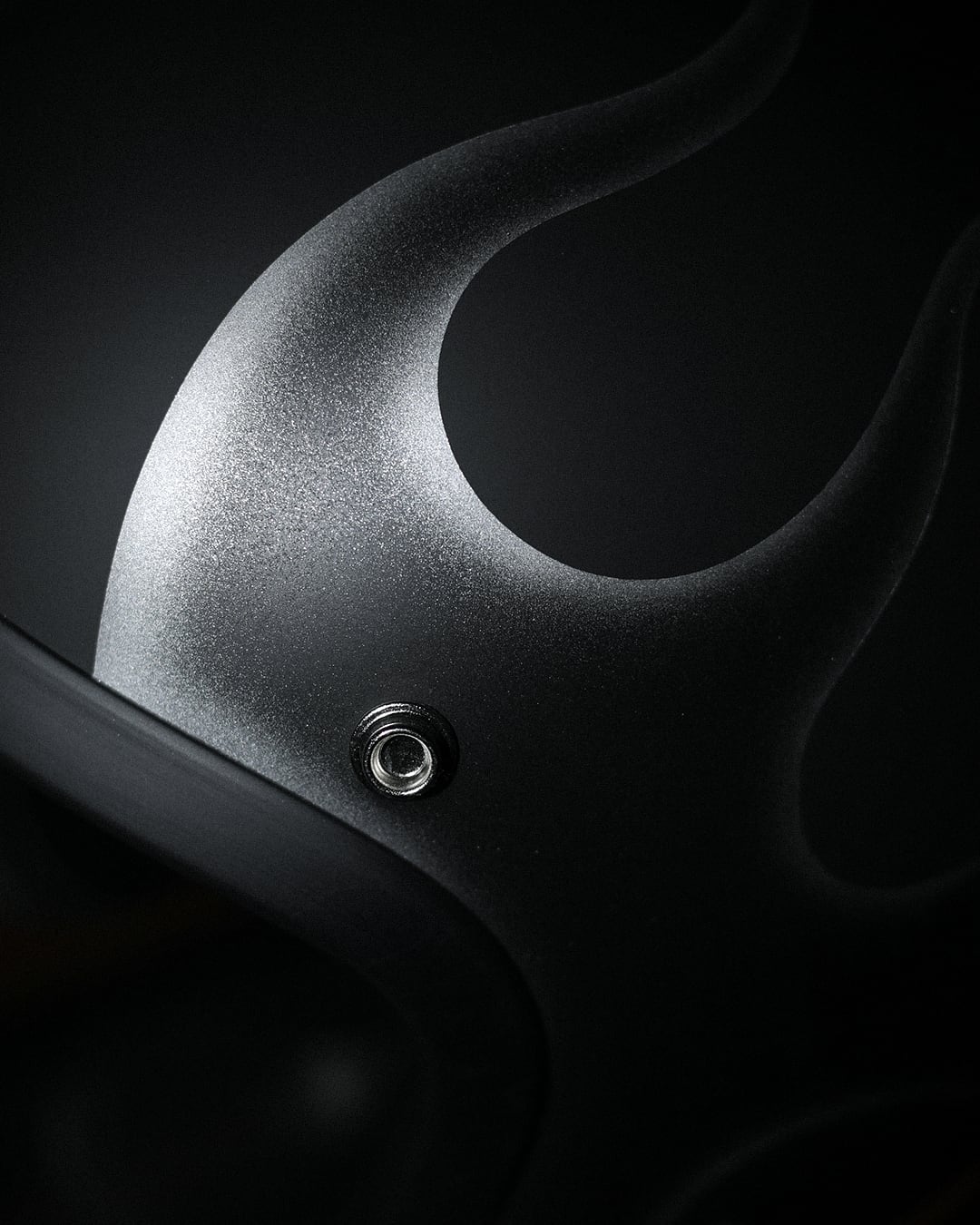 今回はマッドブラックの帽体に、ベーシックな形のフレイムスをシルバーにて落とし込みました。