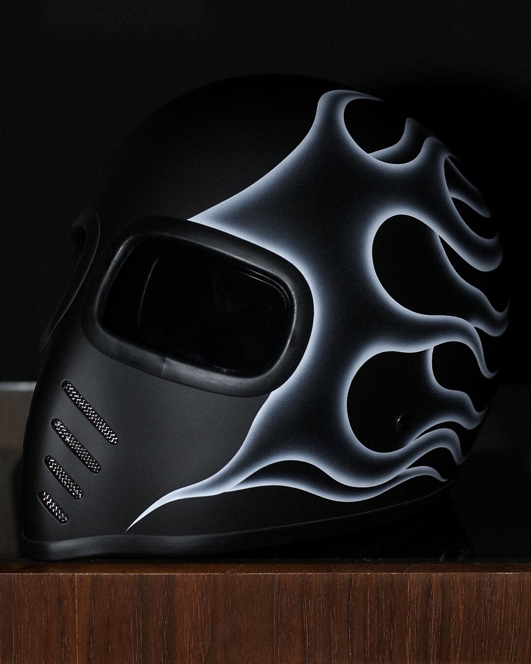 新品のHT MAD HELMET(マッドブラック/フリーサイズ)に、細かくデザインからペイントまで完全ハンドメイドで製作した一点物になります。