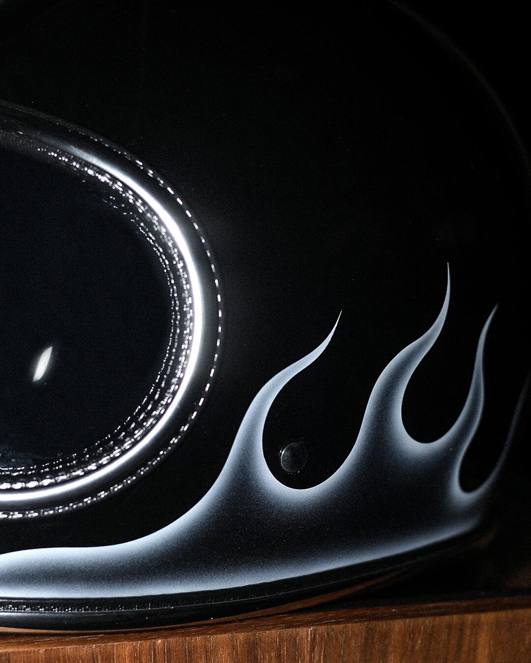 背面まで侵食していく様にフレイムスを描き、フレイムスそれぞれに陰影をつけることで、様々な角度から楽しめる一点物となっています。