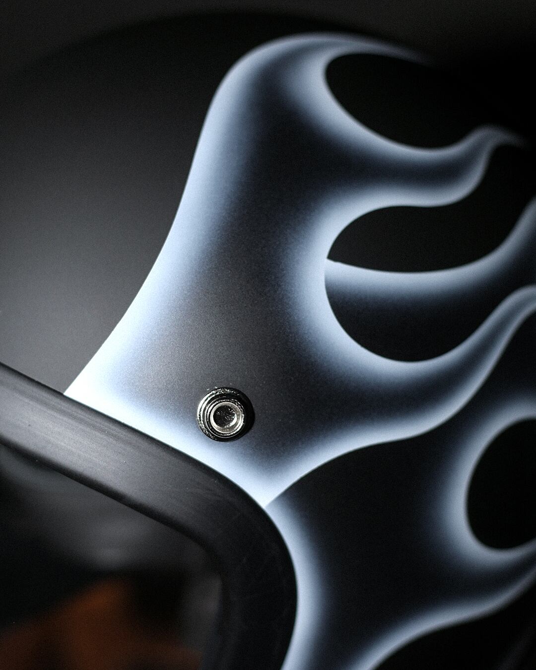 背面まで侵食していく様にフレイムスを描き、フレイムスそれぞれに陰影をつけることで、様々な角度から楽しめる一点物となっています。