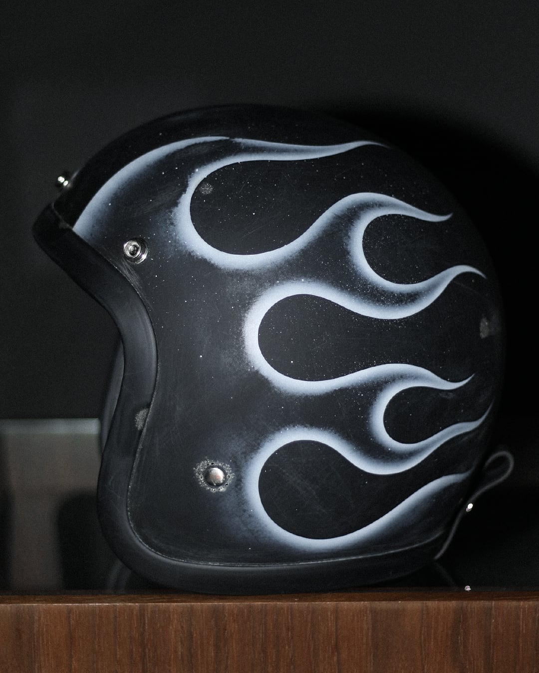 新品のVINTAGE SMALL HELMET(MATTE BLACK/FREE)に、細かくデザインからペイントまで完全ハンドメイドで製作した一点物になります。
