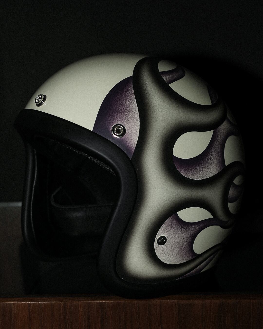 新品のVINTAGE SMALL HELMET(アイボリー/フリーサイズ)に、細かくデザインからペイントまで完全ハンドメイドで製作した一点物になります。