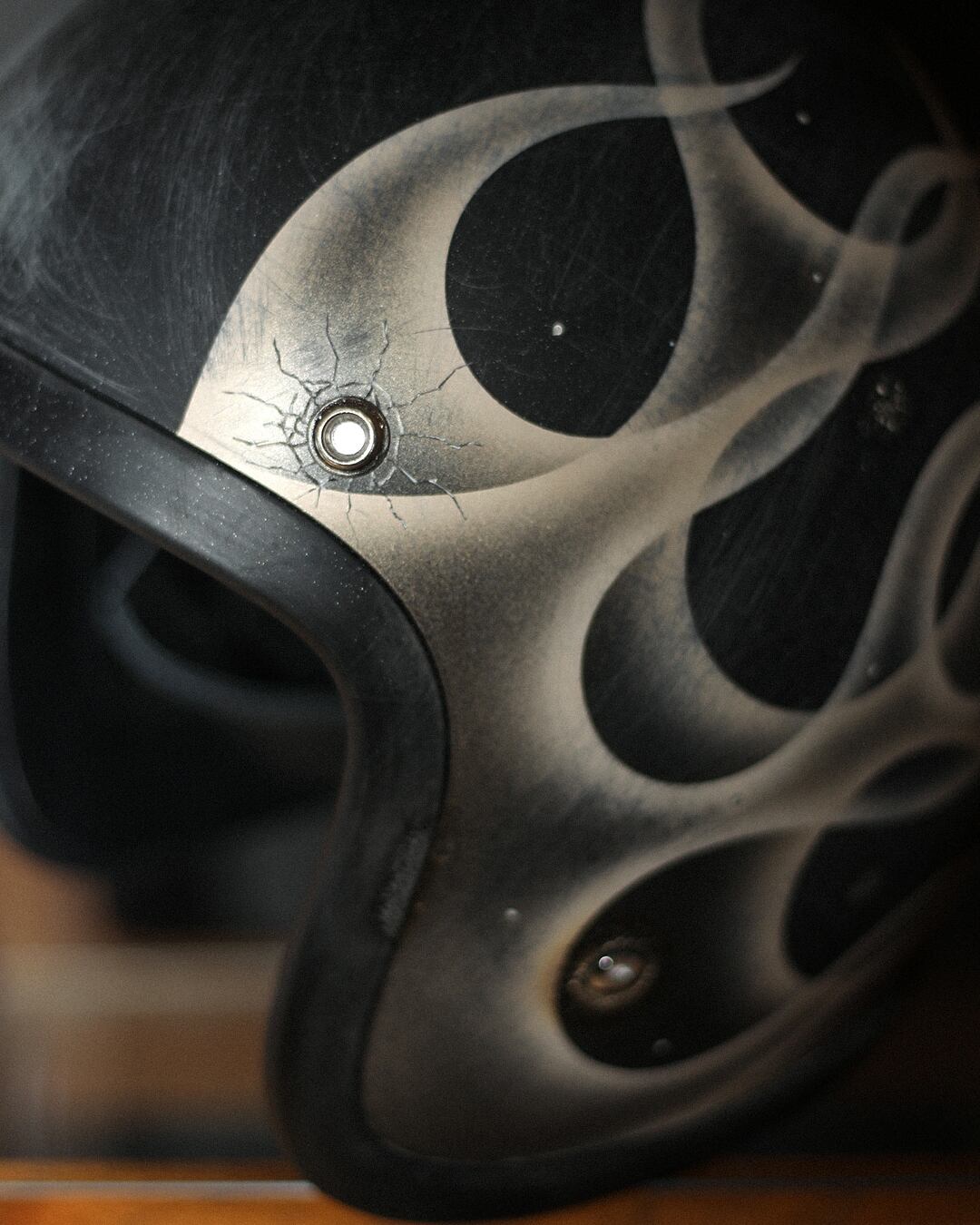 新品のVINTAGE SMALL HELMET(MATTE BLACK/FREE)に、細かくデザインからペイントまで完全ハンドメイドで製作した一点物になります。