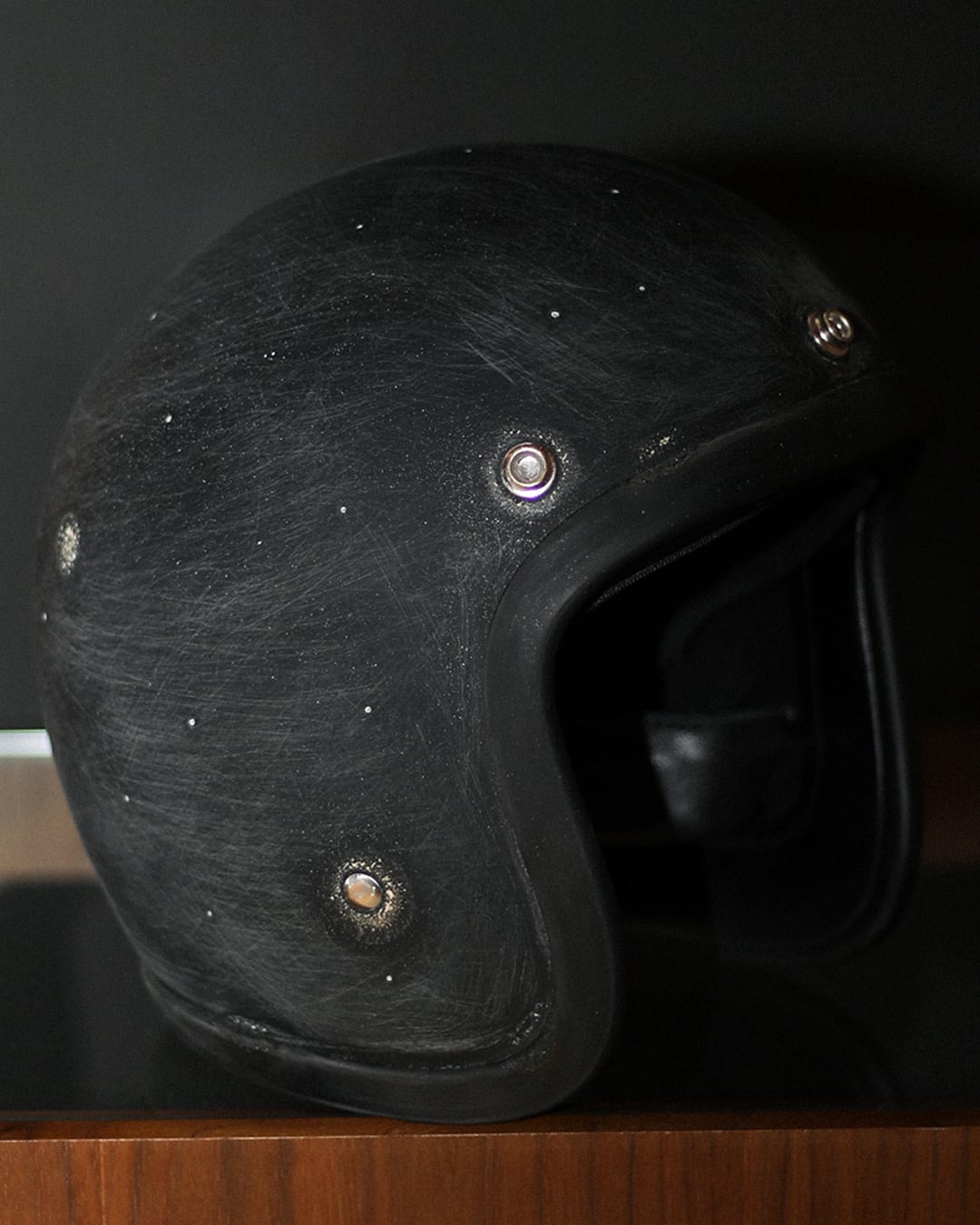 新品の帽体へ塗装している為、インナーなどは清潔ながらも、ヴィンテージヘルメットの様な風合いを楽しむことができます。