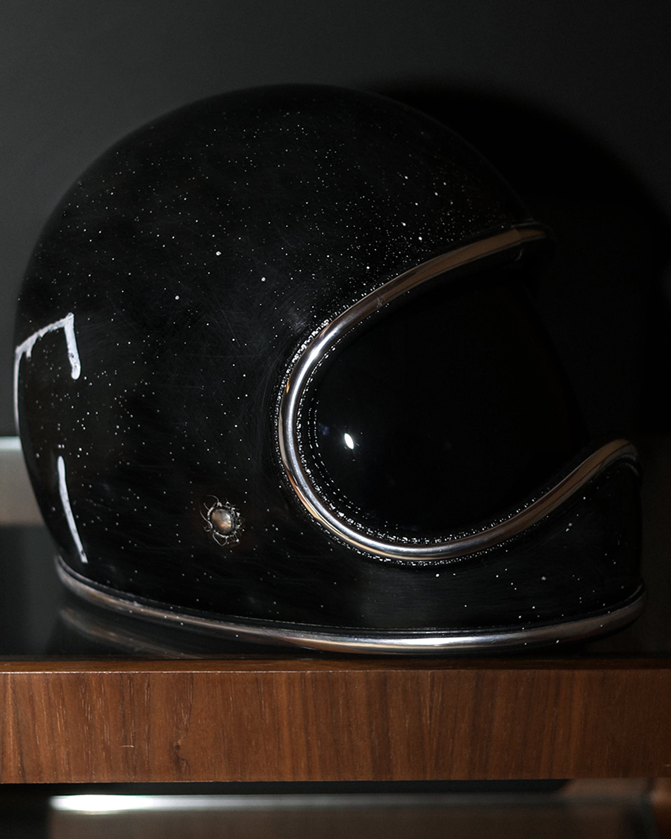 新品のUNIVERSE HELMET(艶ありブラック/フリーサイズ)に、細かくデザインからペイントまで完全ハンドメイドで製作した一点物になります。