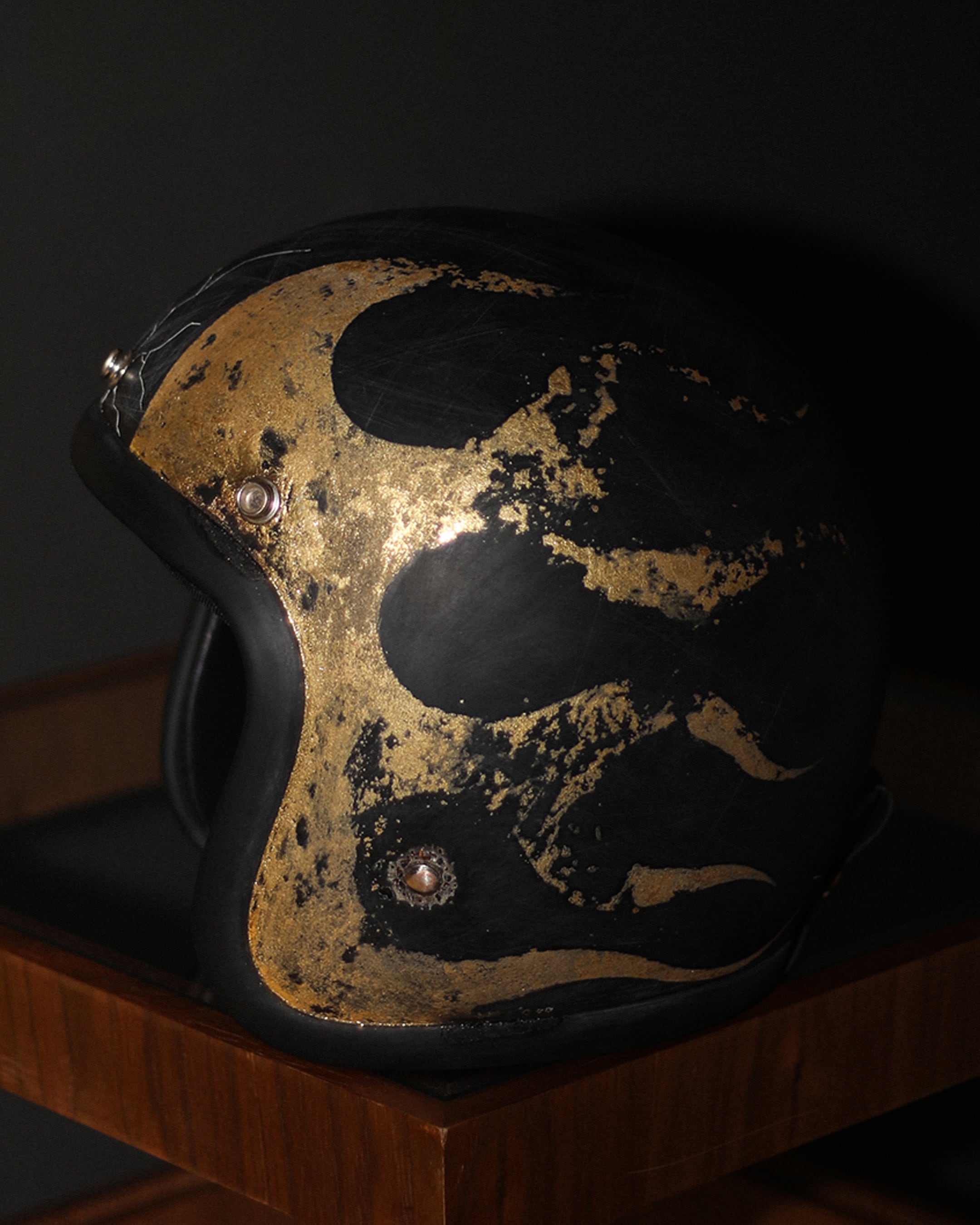 新品のVINTAGE SMALL HELMET(マッドブラック/フリーサイズ)に、細かくデザインからペイントまで完全ハンドメイドで製作した一点物になります。