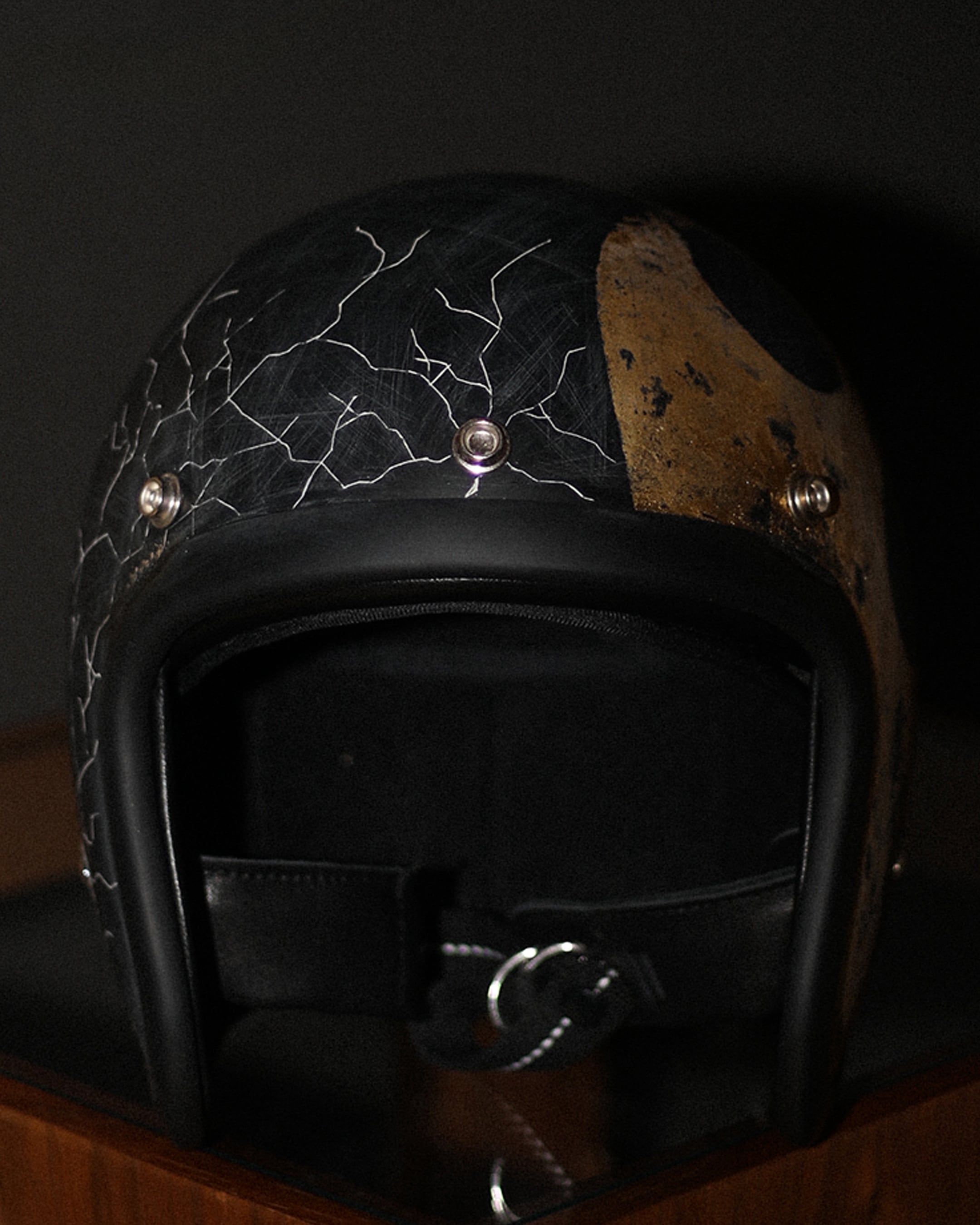 新品の帽体へ塗装している為、インナーなどは清潔ながらも、ヴィンテージヘルメットの様な風合いを楽しむことができます。