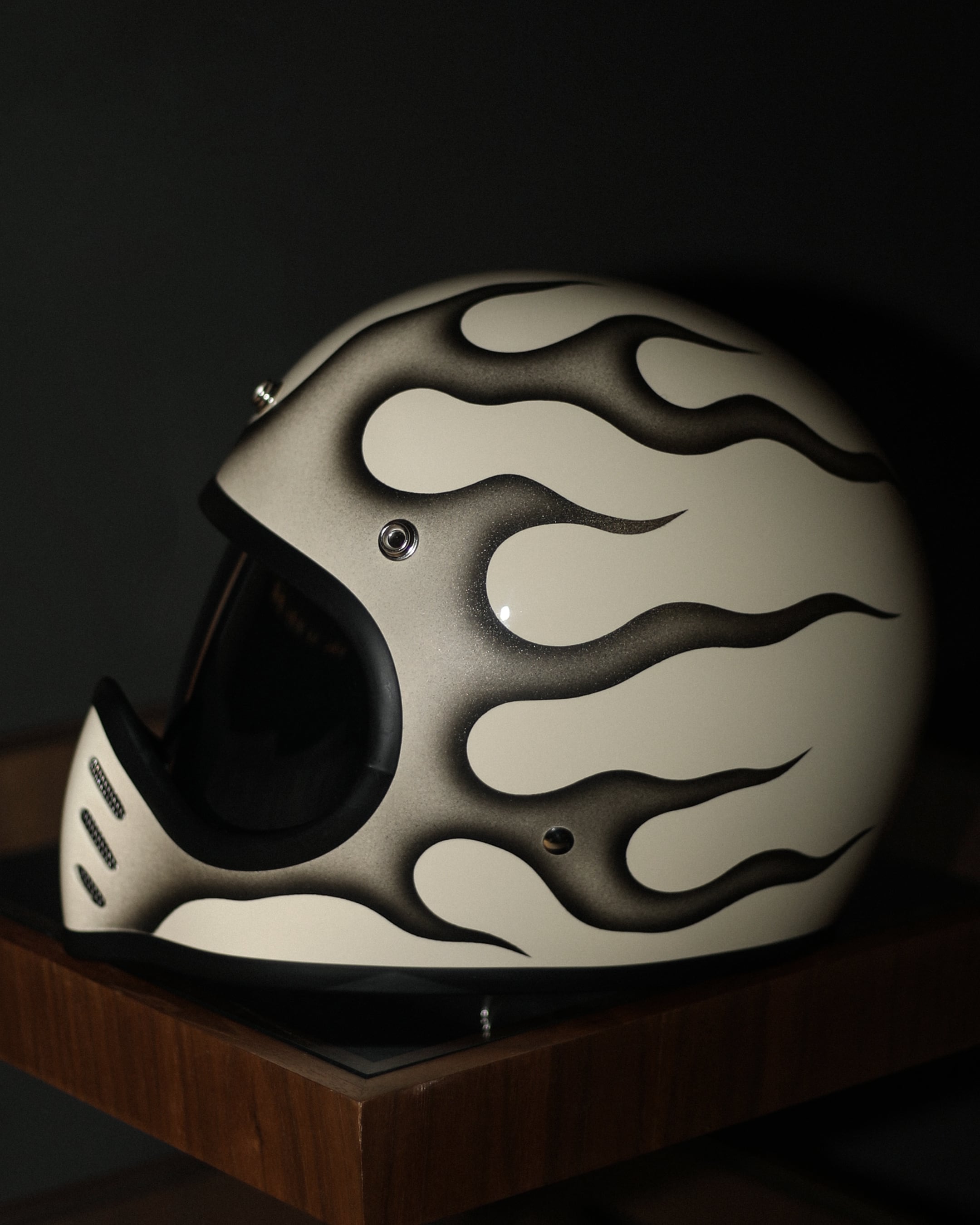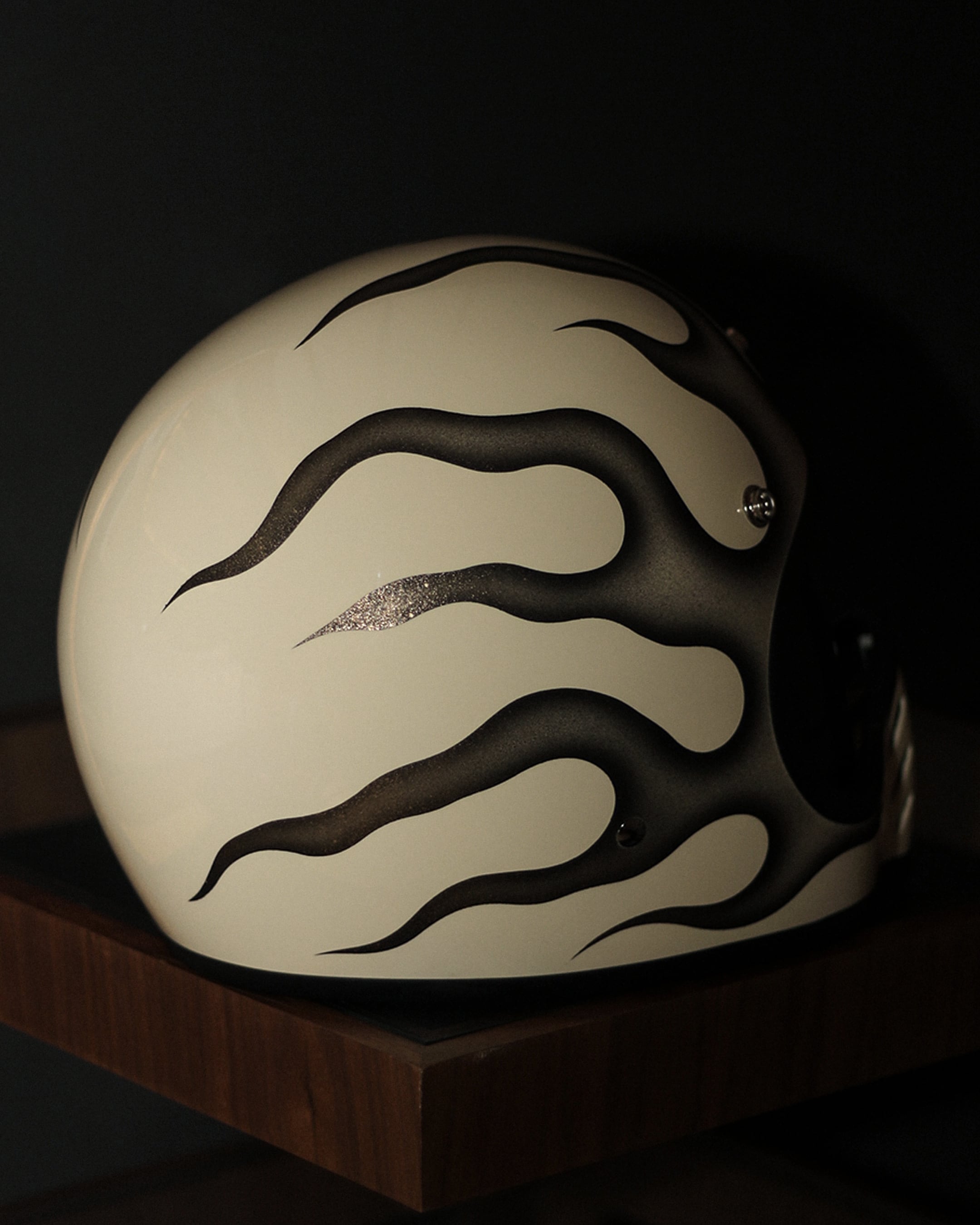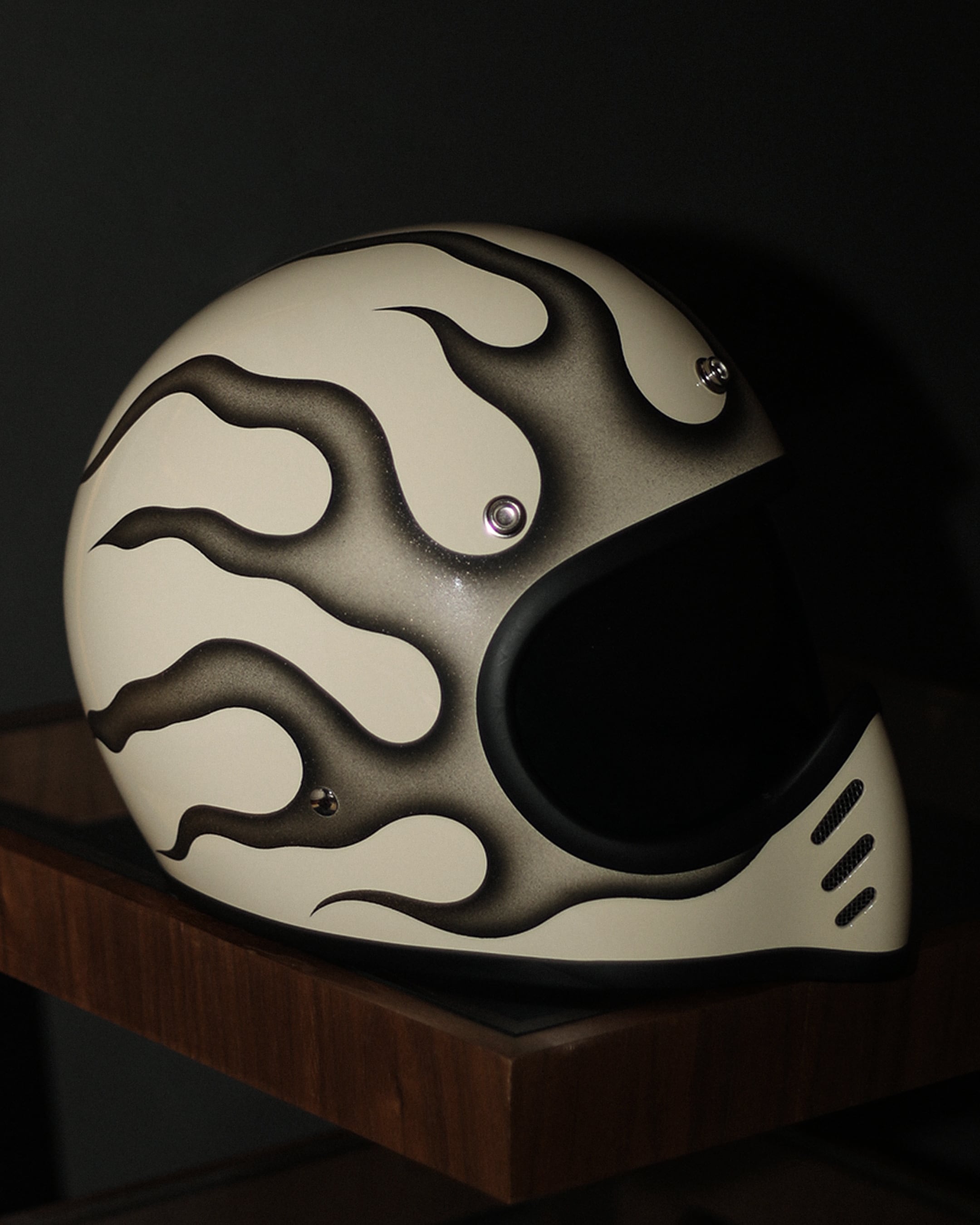 新品のVINTAGE SMALL FULL HELMET(IVORY/FREE)に細かくデザインからペイントまで完全ハンドメイドで製作した一点物になります。