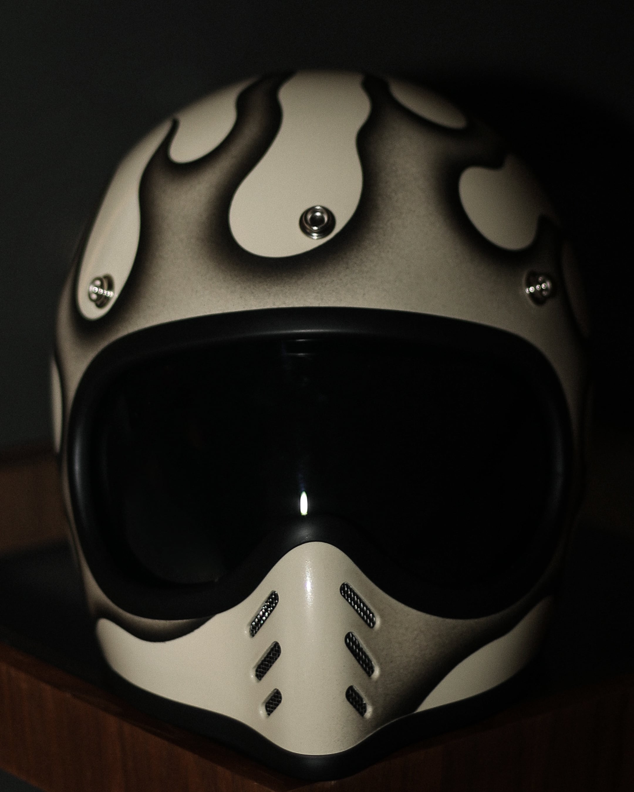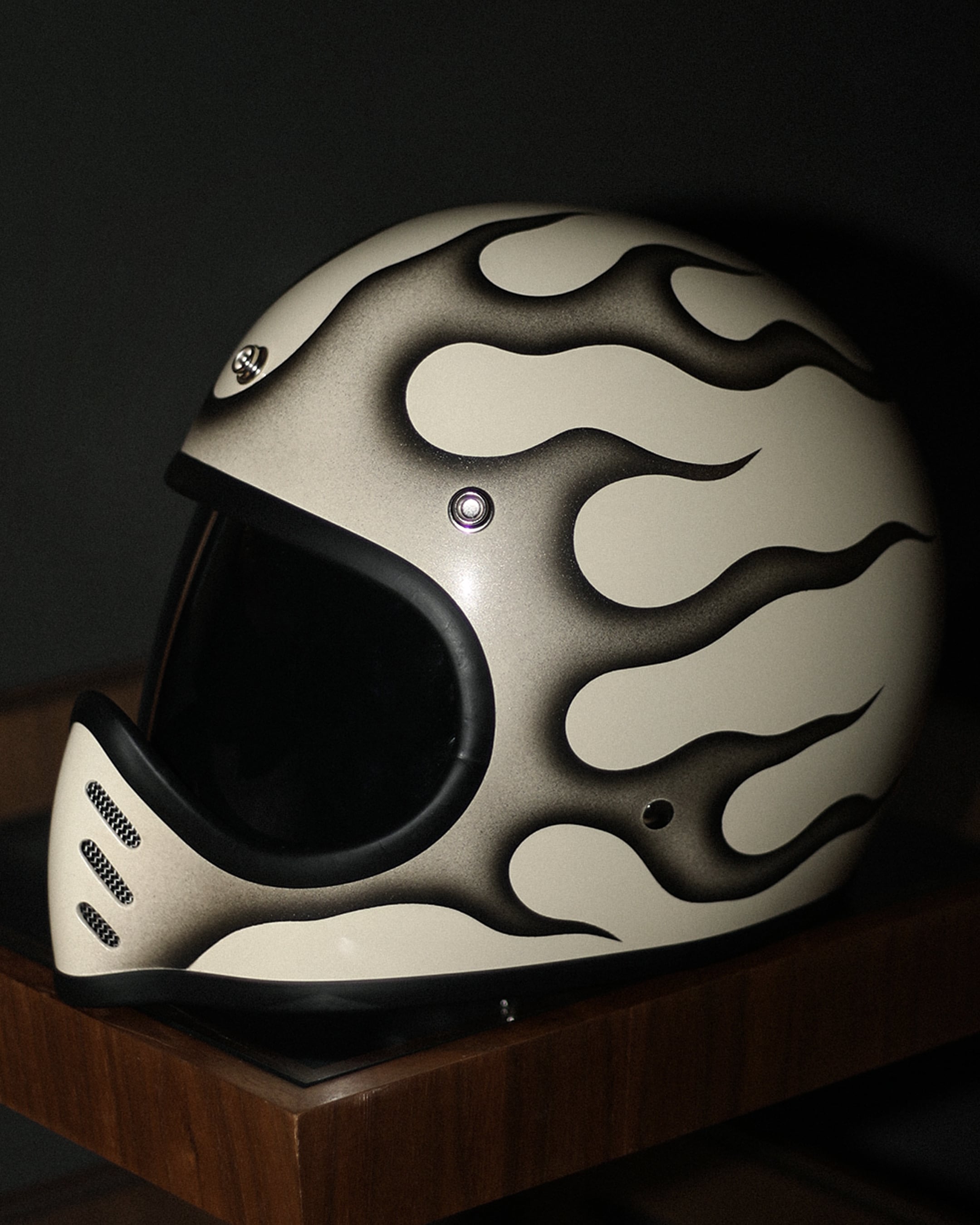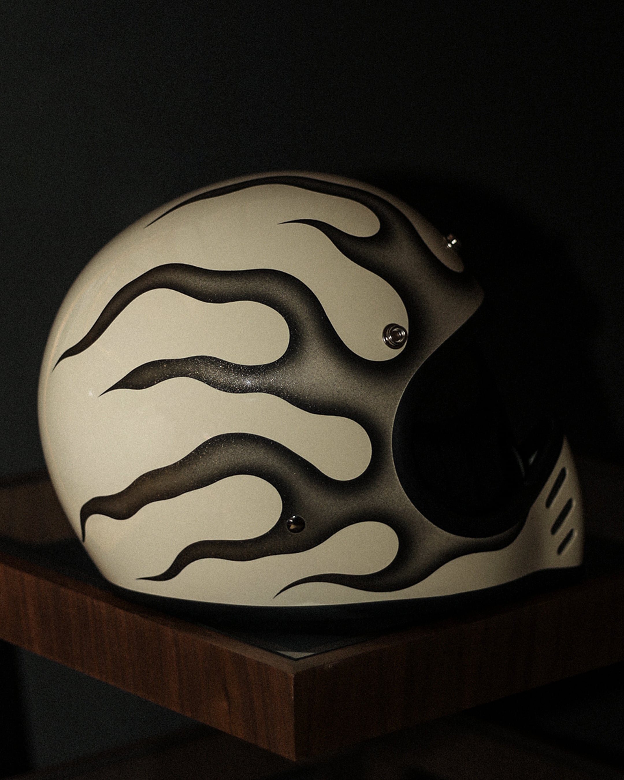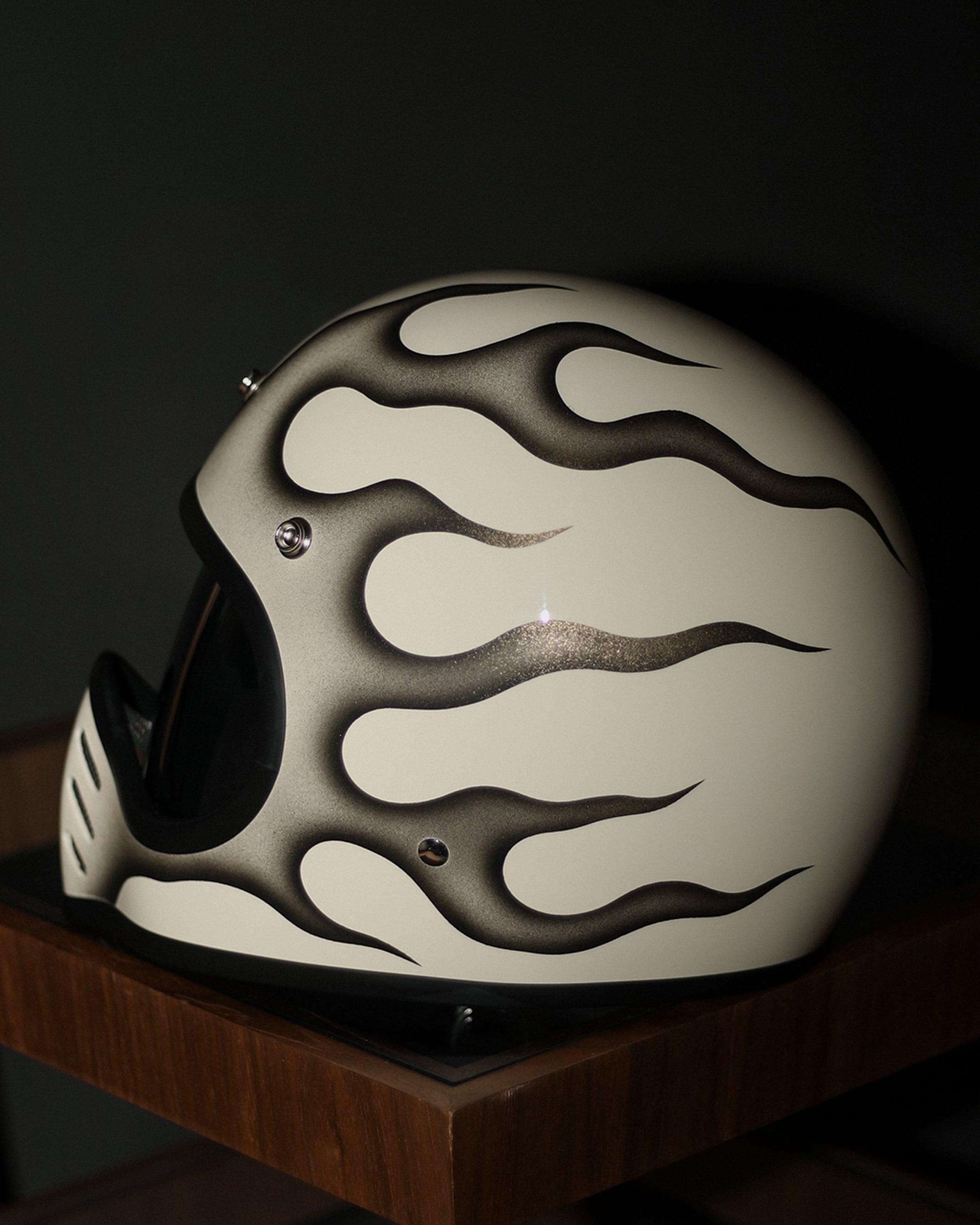 新品のVINTAGE SMALL FULL HELMET(IVORY/FREE)に細かくデザインからペイントまで完全ハンドメイドで製作した一点物になります。