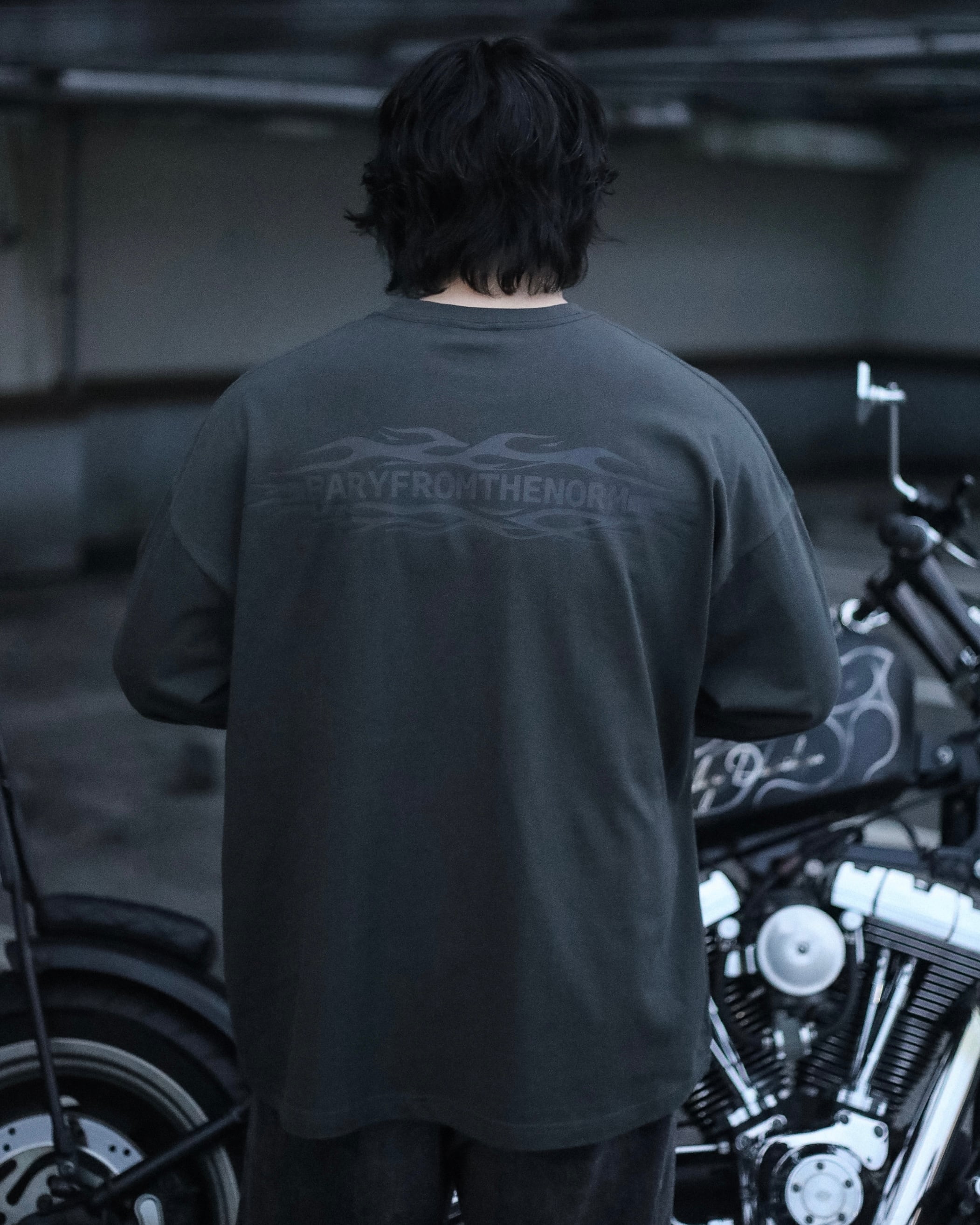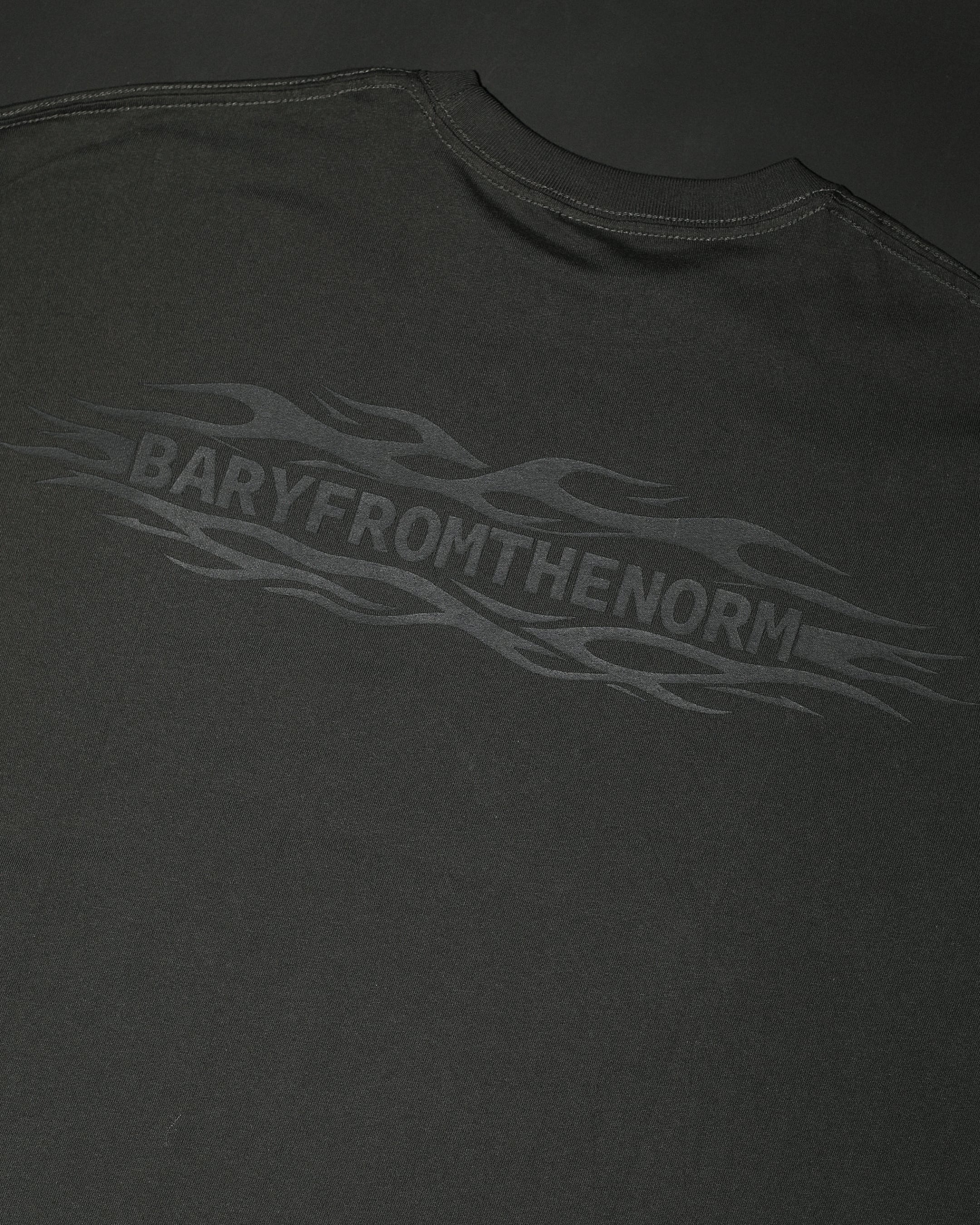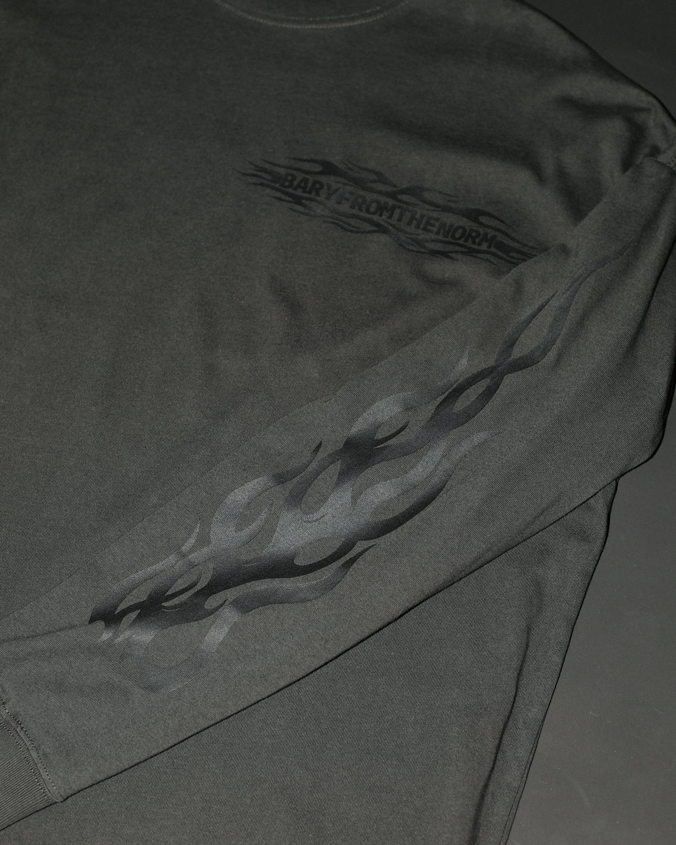 フロントとバックには、ブランドネームであるBARYFROMTHENORM とフレイムスを掛け合わせたものをそれぞれ絶妙なサイズ感で落とし込んでいます。