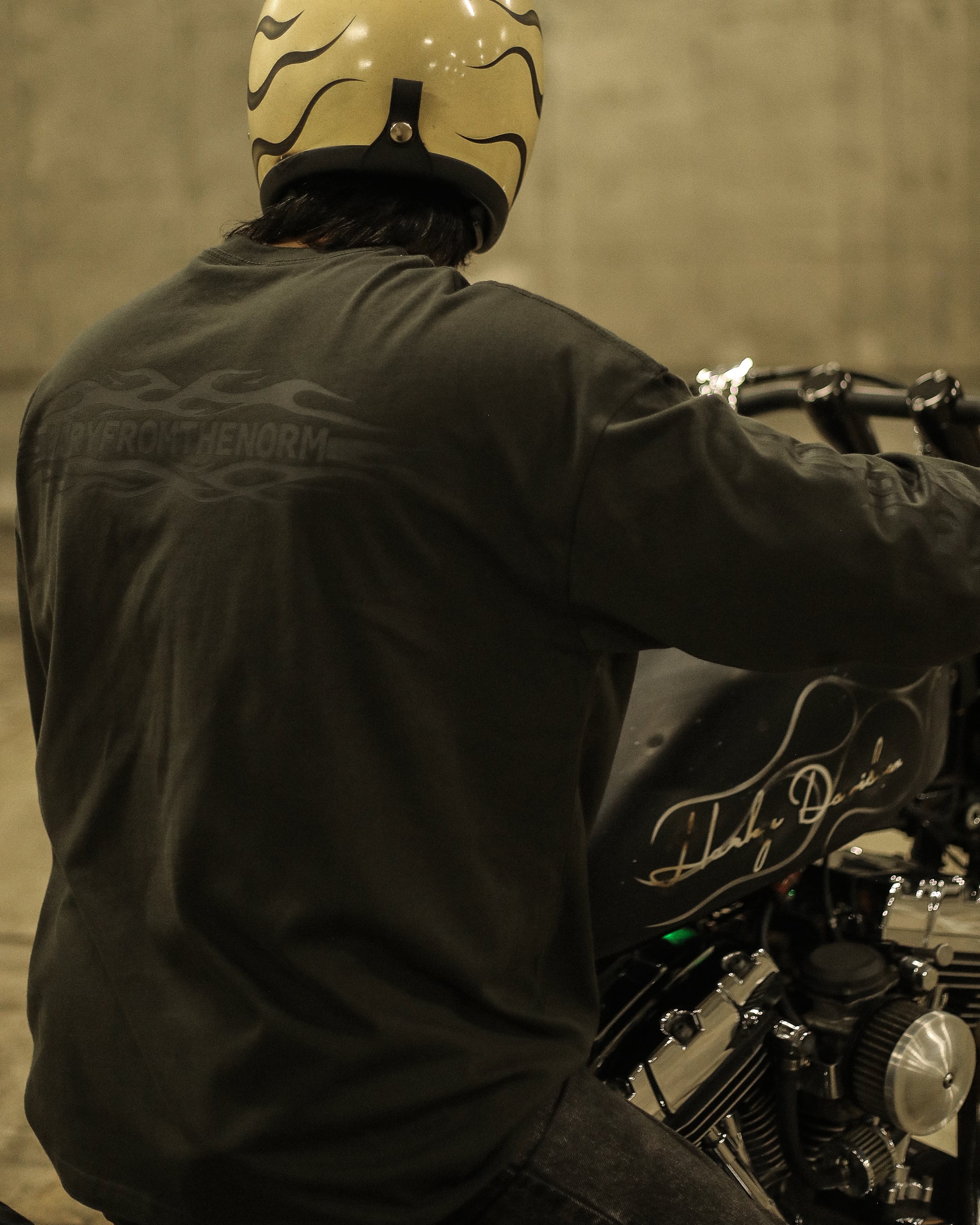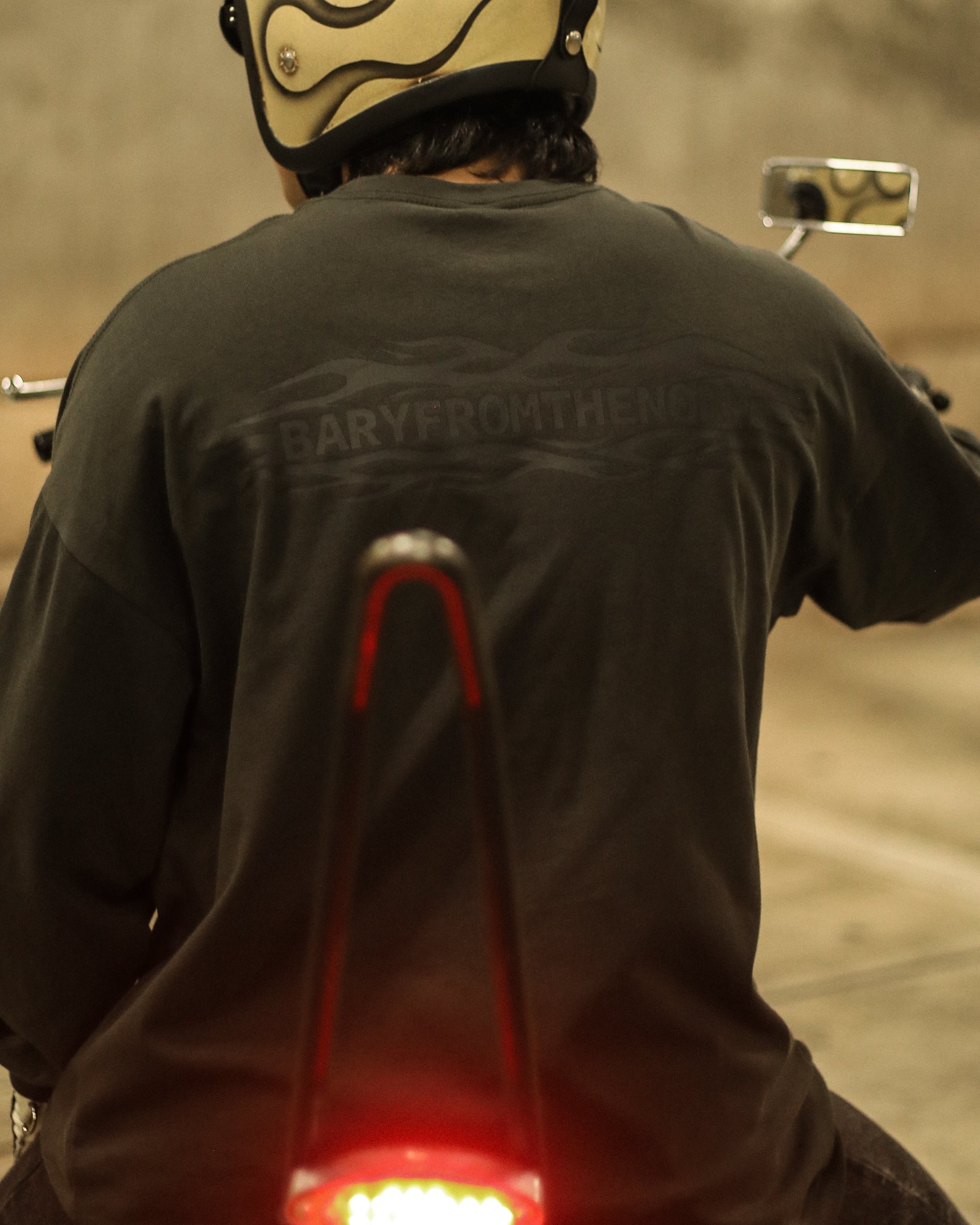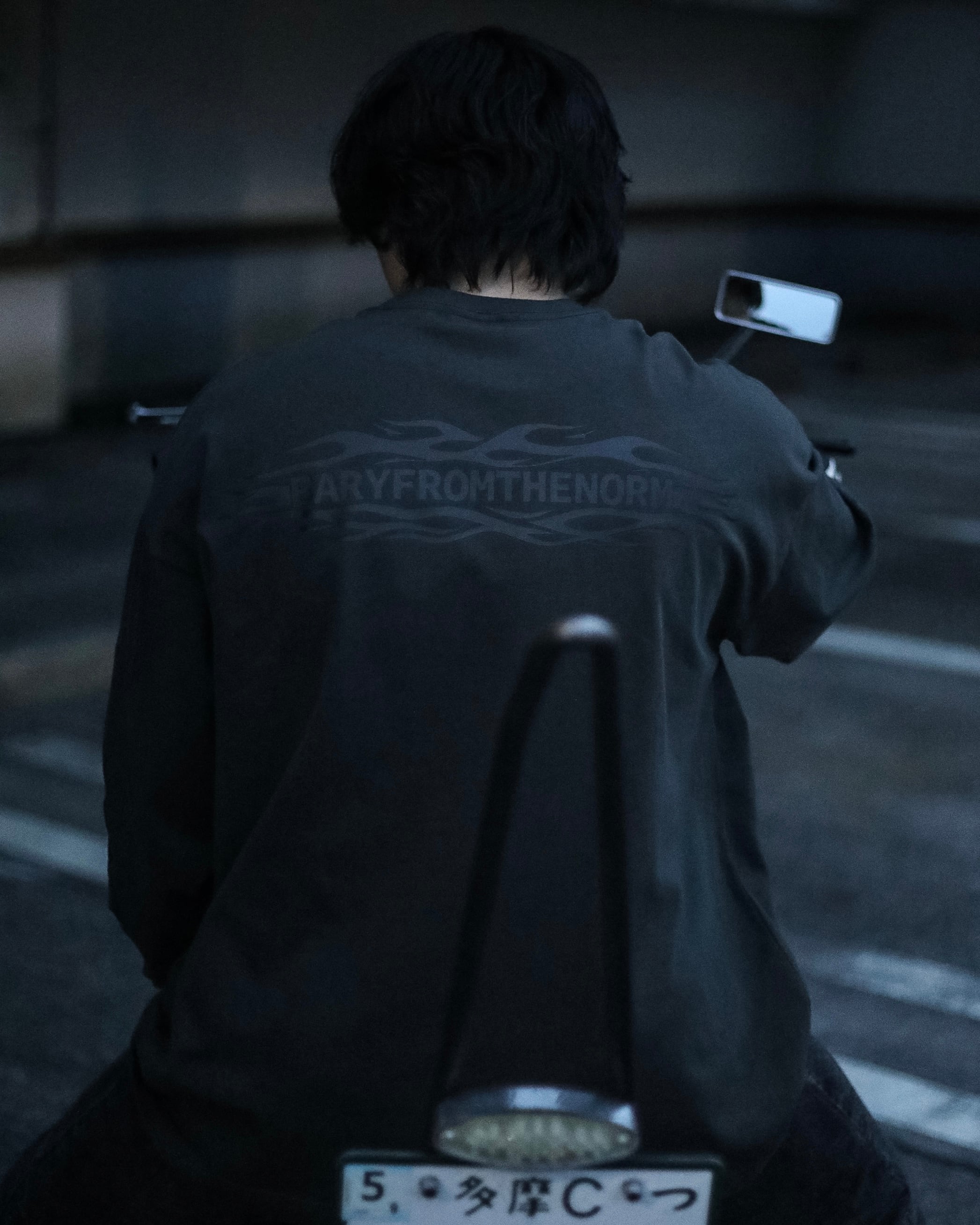 フロントとバックには、ブランドネームであるBARYFROMTHENORM とフレイムスを掛け合わせたものをそれぞれ絶妙なサイズ感で落とし込んでいます。