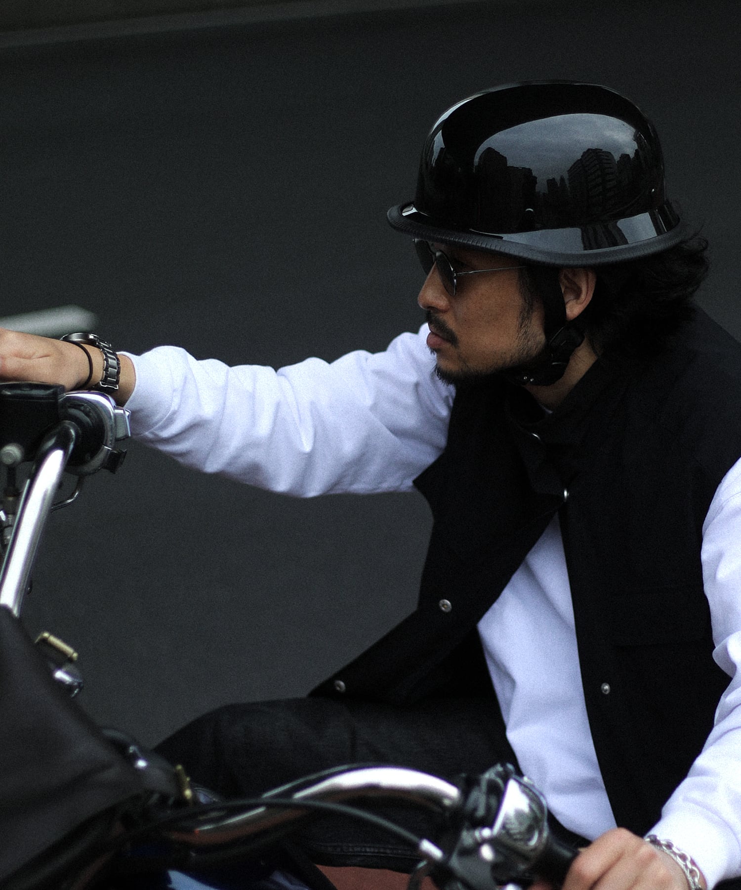 This helmet is inspired by the old German military helmet design. It suits a wide range of bikes, from chopper-style motorcycles to basic and classic bikes.