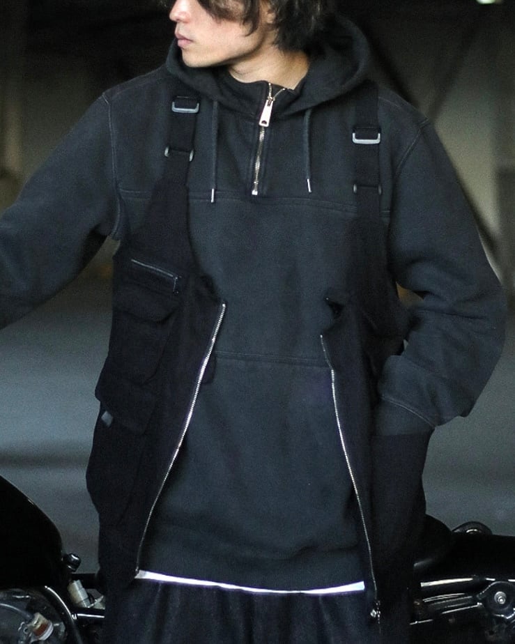 そのままベストで着ることもでき、大きい荷物やヘルメットを収納し使用することができます。
