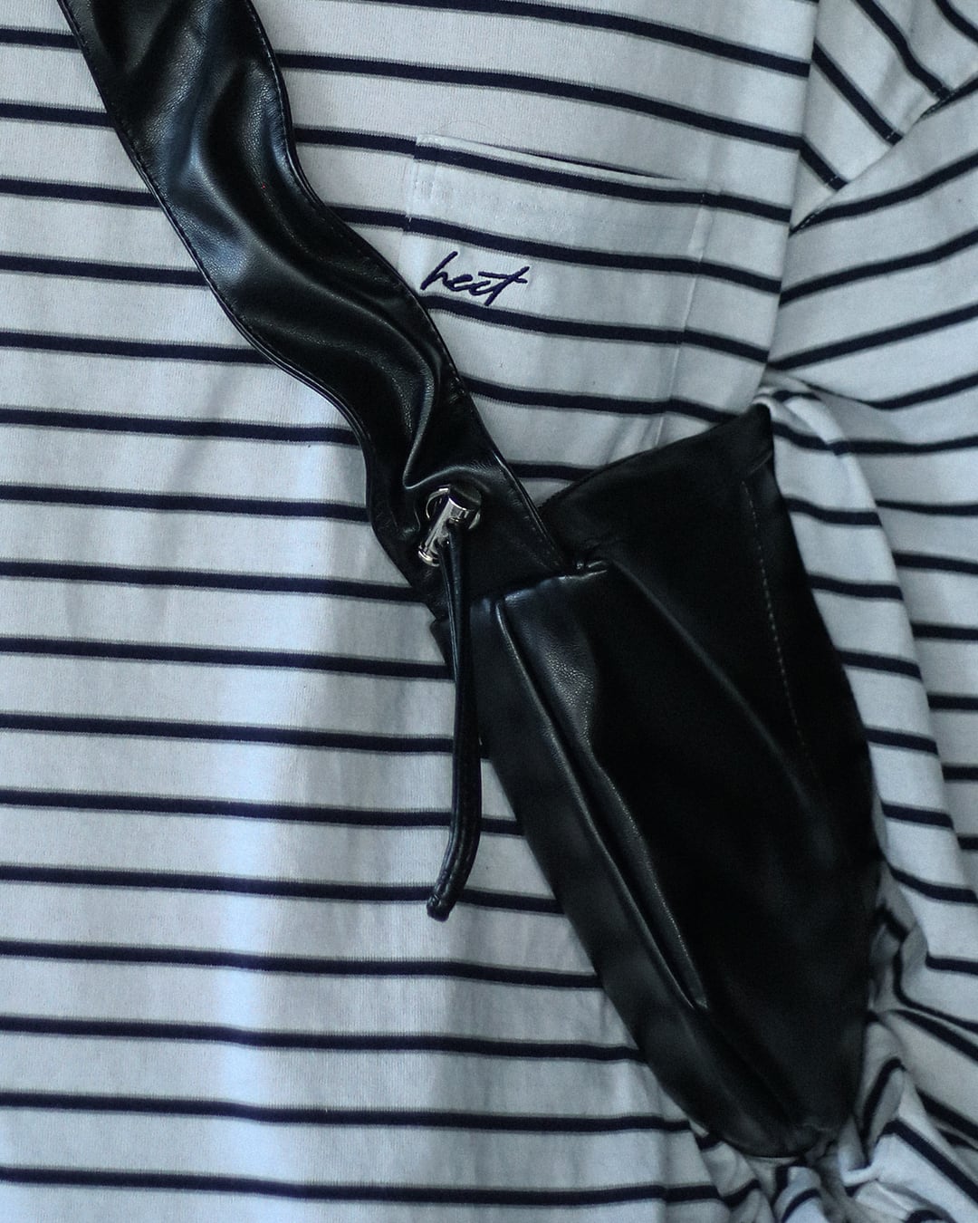 This shoulder bag is made of PU leather. The handle features a drawstring, allowing the strap length to be adjusted. The tightening of the drawstring creates a gathered effect on the handle, adding a stylish accent.