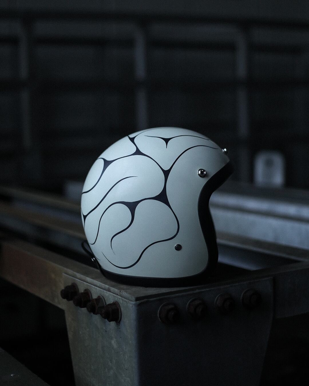 新品のVINTAGE SMALL HELMET(アイボリー/フリーサイズ)に、細かくデザインからペイントまで完全ハンドメイドで製作した一点物になります。