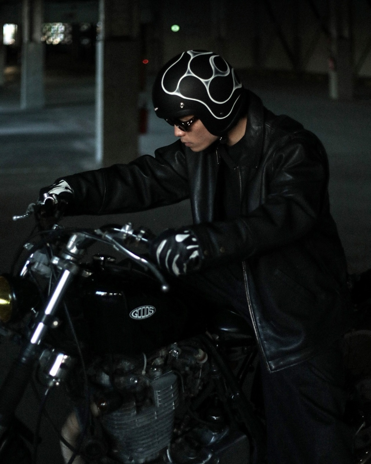 今回のデザインはマッドブラックの帽体に陰影を作り出したフレイムスデザインになっています。