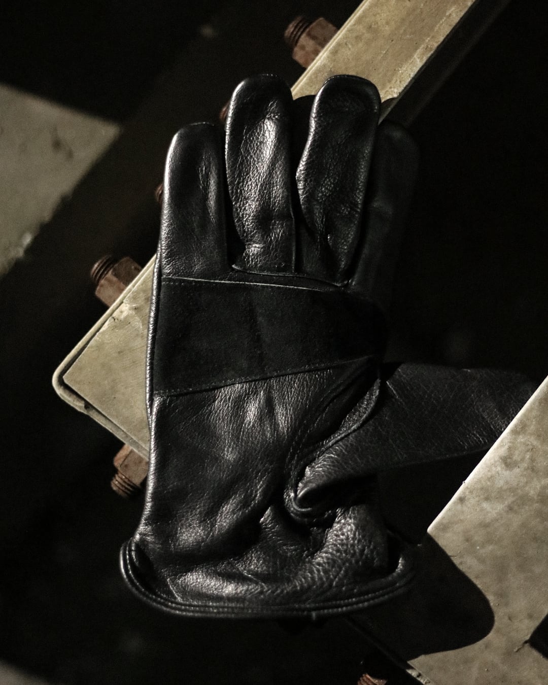 100%優良な鹿革を使い、程よくハリのある革のみを選び焼印をすることで最初から長らく使っているようなグローブになっています。