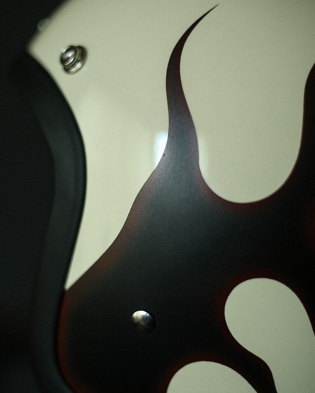 今回のデザインは、木のような力強さのあるフレイムスを黒ベースで描き、レッドメタリックカラーをグラデーションで落とし込みました。