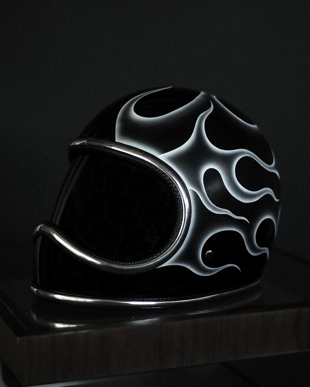 前回販売したLAYERED FLAMESを更にグレードアップさせ、ユニバースヘルメットに合うサイズ感やバランスで二層のフレイムスを描きました。
