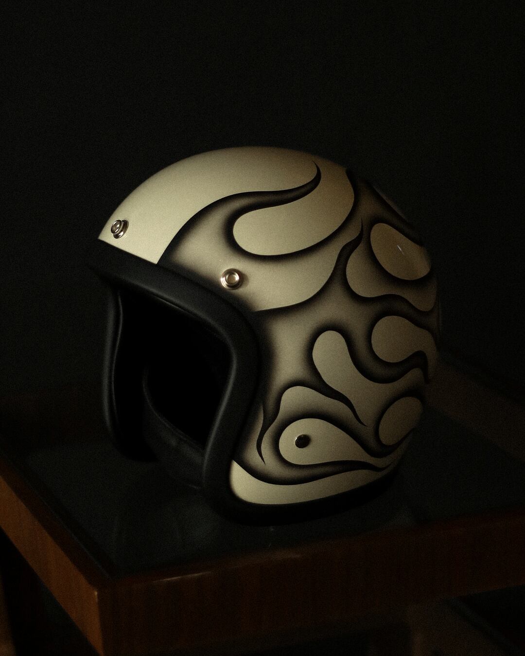 背面まで侵食していく様にフレイムスを描き、フレイムスそれぞれに陰影をつけることで、様々な角度から楽しめる一点物となっています。