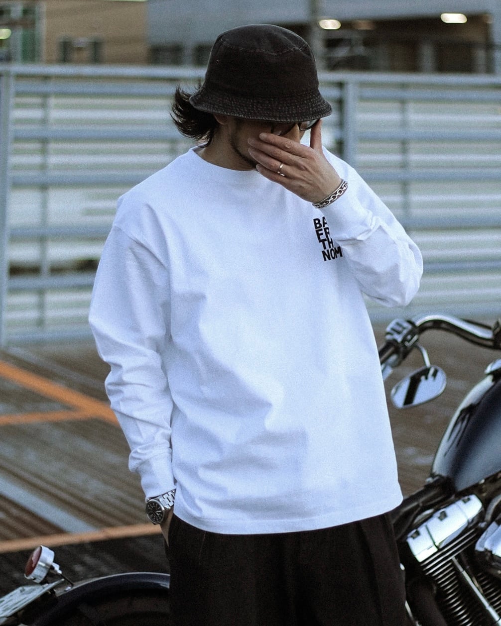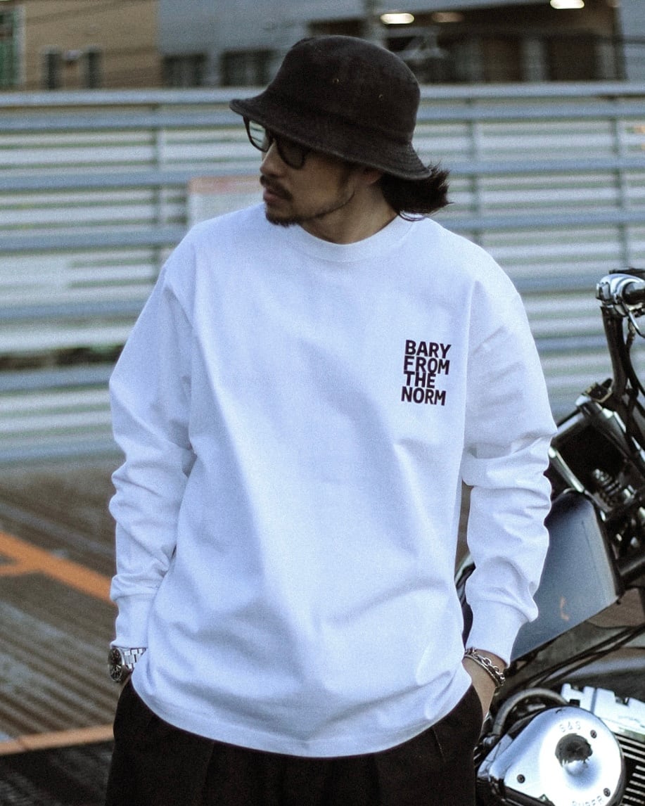 ブランドテーマである"BARYFROMTHENORM"を背面とフロントそれぞれにシンプルにプリントし、1枚でもコーデが完成しインナーとしても着れる万能品となっています。